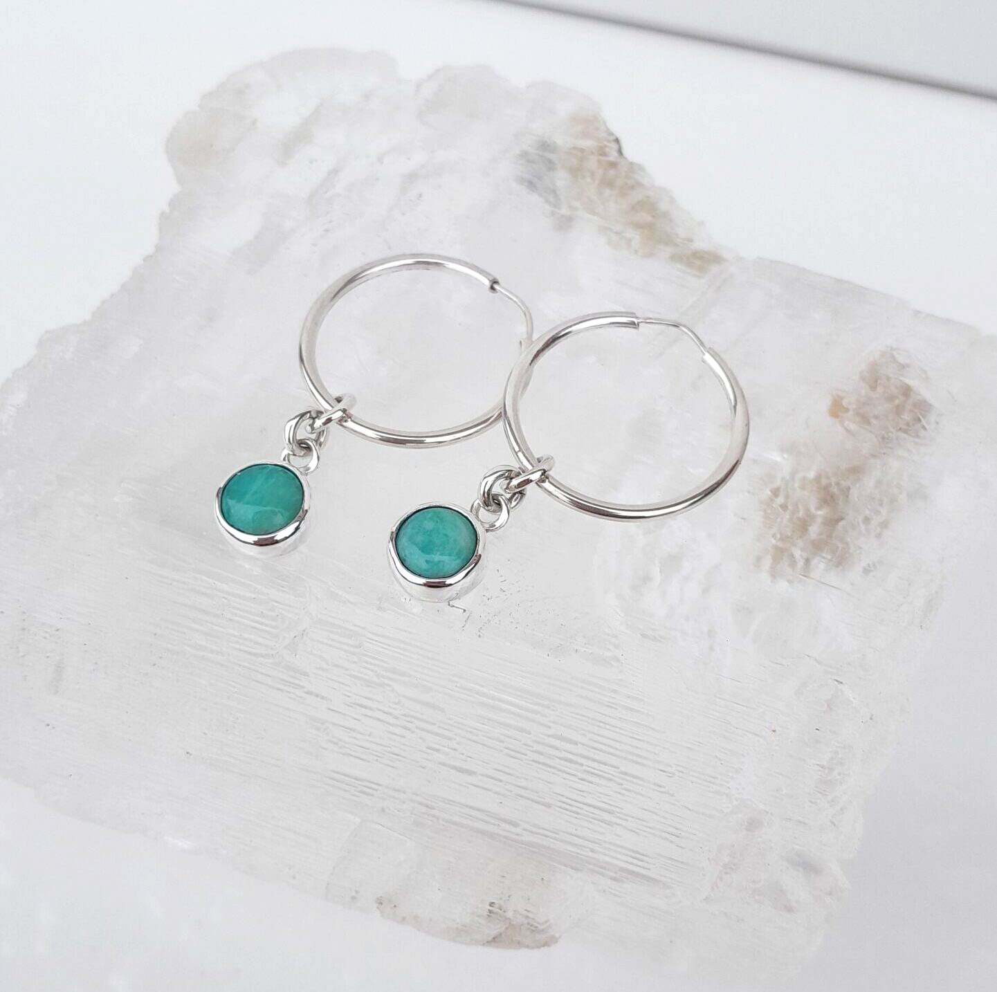 Peso 6 gr | Medida piedra: 0,6 cm | Aros: 2 cm diámetro | Largo total: 3,5 cm